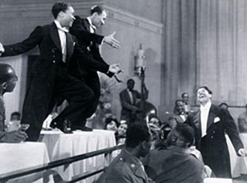 Братья Николас (Nicholas Brothers). Братья Фаярд (Fayard) (1914) и Гарольд (Harold) (1921-2000) Николас родились в Филадельфии в семье музыкантов. Мать была пианисткой, отец - барабанщик. Уже в трехлетнем возрасте Фаярда сажали за кулисами у сцены, где он мог видеть водевильные спектакли с участием известных темнокожих актеров и танцовщиков таких, как Элис Витман (Alice Whitman), Вилли Брайнт (Willie Bryant), Билл "Боджанглс" Робинсон (Bill "Bojangles" Robinson). Фаярду нравилось их выступление, и он пытался повторить их танцевальные, акробатические и клоунские трюки перед соседскими детьми и перед младшим Гарольдом, который в свою очередь пытался копировать, и подражать старшему брату. Таким образом, уже в раннем возрасте они начали "станцовываться" и вырабатывать единый стиль. У них это не плохо получалось, и их приглашают в программы "The Horn" и "Hardart Kiddie Hour", которые идут в то время на театральных подмостках их родного города. Здесь братьев Николас замечает продюссер Лафаетт и приглашает в Нью-Йорк в свой театр. Потом в 1932 году они начинают работать в знаменитом "Коттон клубе" ("Cotton Clab"). В течении двух лет они выступают со знаменитыми оркестрами Лаки Миллиндера (Lucky Millinder), Кеба Калловейя (Cab Calloway), Дюка Эллингтона (Duke Ellington) и Джимми Лансефорда (Jimmy Lunceford), и проявляют себя как талантливые тэп-танцовщики и актеры. Работа в "Коттон клубе" приносит им известность и популярность. В 1934 году братья едут покорять Голливуд, и снимаются в фильмах "Kid Millions", "The Big Broadcast" (1936) "Black Network". Со спектаклем "Blackbirds" они гастролируют в Англии, где получают возможность познакомиться с творчеством профессиональных европейских танцовщиков. Это вдохновляет их, и они вставляют в свои номера еще больше технических и танцевальных элементов. Бродвейский дебют братьев Николас состоялся в 1936 году в шоу "Зигфельд Фолли" ("Ziegfeld Follies"), режиссером которого был Винсент Минелли (Vincent Minelli) и хореографом Джорж Баланчин (George Balanchine), и где они выступают с такими звездами, как Фанни Брайс (Fannie Brice), Боб Хоуп (Bob Hope) и Жозефин Бейкер (Josephine Baker). Позже Джорж Баланчин приглашает Фаярда и Гарольда Николасов принять участие в мюзикле "Babes in Arms", который ставит на Бродвее в 1937 году. Это стало значительным событием в их творческой жизни. Именно благодаря репетициям и работе с Баланчиным многие стали думать, что братья Николас получили профессиональное хореографическое образование.